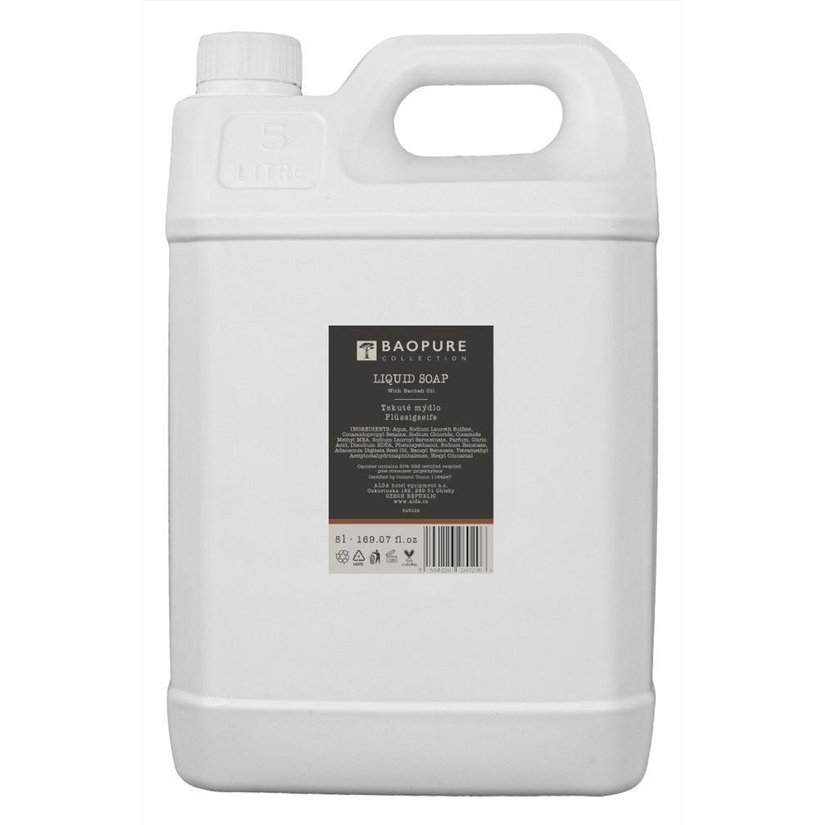 The liquid soap from the BAOPURE collection is gentle on the skin and effective for everyday hand washing. It contains baobab oil, which moisturizes and softens, while the fresh scent with notes of lemon, clove and flowers brings a pleasant feeling of cleanliness. The soap is free of parabens, silicones and GMOs, not tested on animals. Large packaging in a 5l canister is ideal for hotels, wellness or public spaces.