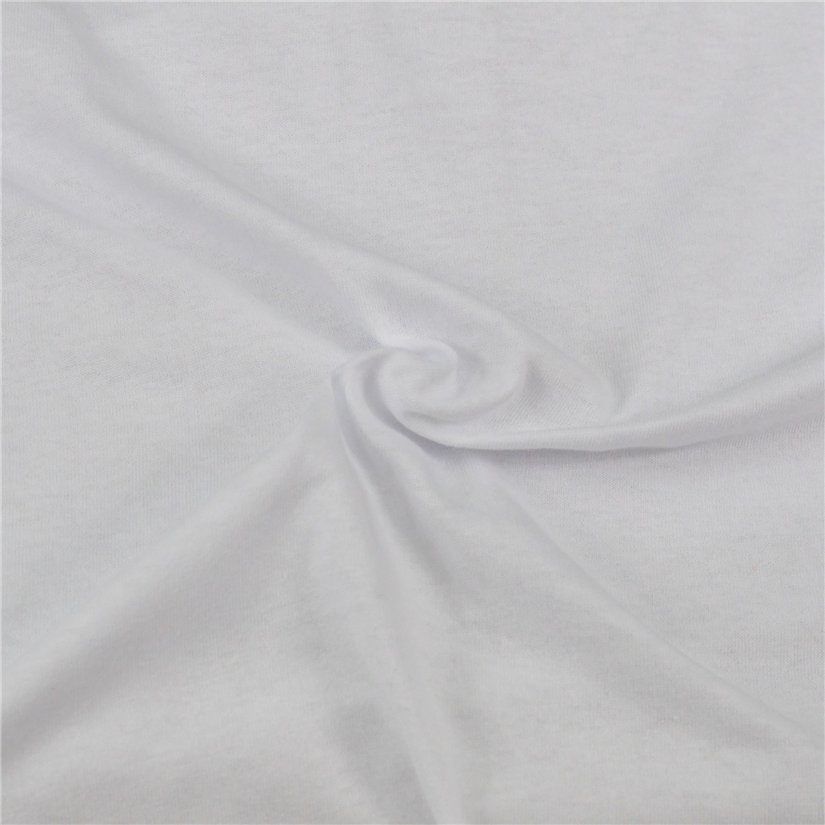 The white jersey fitted sheet is made of a very fine stretch knit fabric made of 100% cotton. The weight of the jersey knit fabric is 145g/m2. The knit fabric is smooth, very pleasant to the touch and soft.