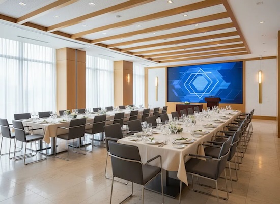 - Lighting: Dimming capability and different lighting scenes (work light vs. ambient light for an evening reception) are essential.