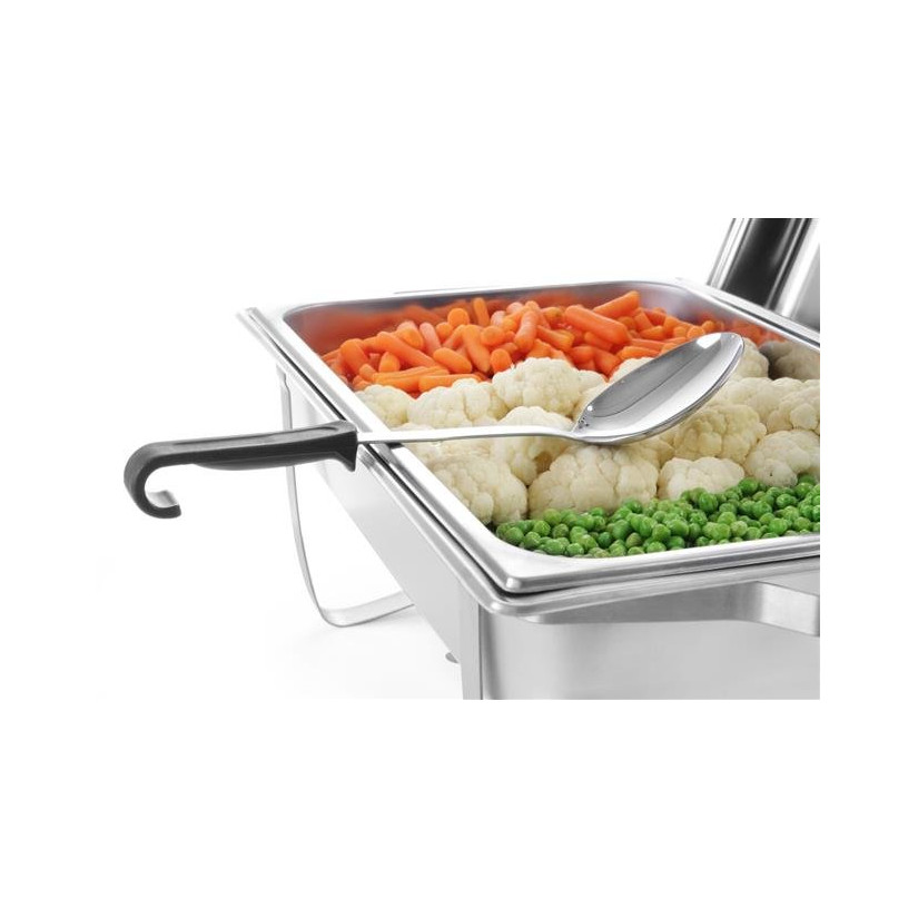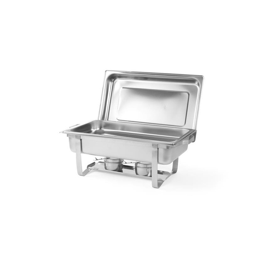 Chafing, roll-top heater for paste GN 1/1. Thanks to the possibility of setting the lid in the half-open position, the container is ideally suited for self-service operation: