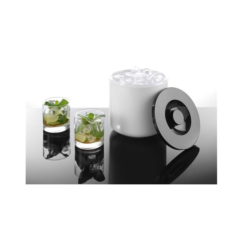 Ice container white double-walled 5 l. Ice tray with perforated bottom. Black lid with handle.