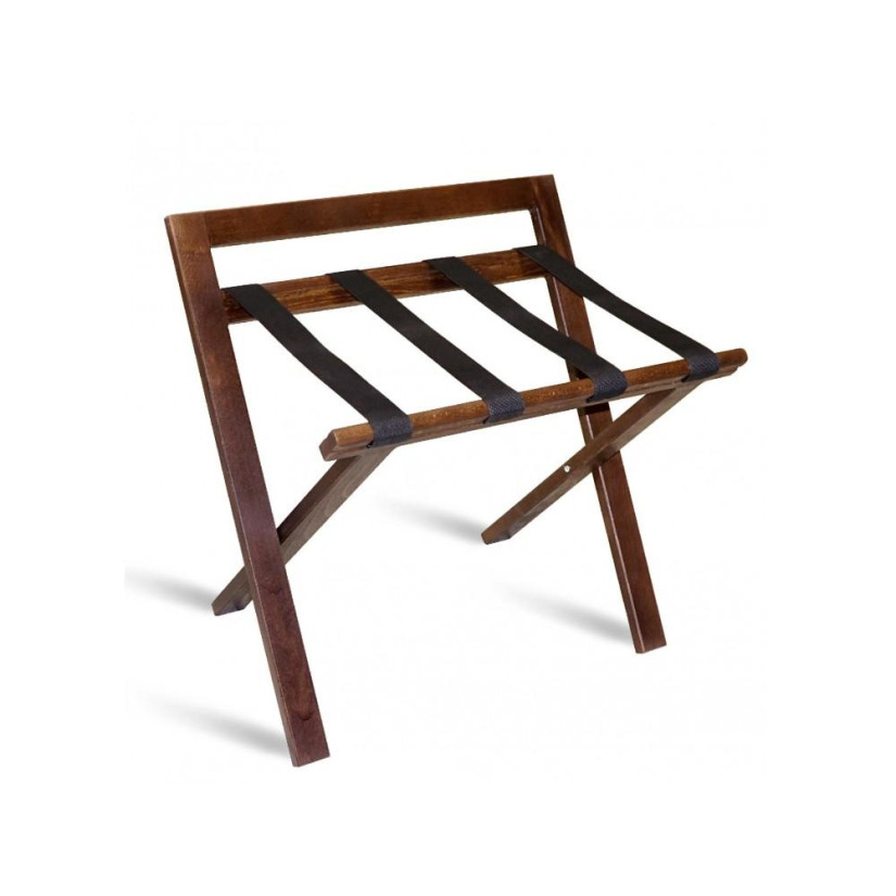 Der Kofferständer WOOD PLUS mit walnussfarbener Rückenlehne ist ein klassischer Helfer in jedem Zimmer. Die WOOD PLUS Version verfügt über eine Stütze, die sicherstellt, dass das verstautes Gepäck gegen Herunterfallen geschützt ist. Originelles Design, schönes Aussehen, 4 schwarze Nylonbänder, die für ausreichende Tragfähigkeit des Kofferständers sorgen. Ein toller Helfer für jeden Gast.