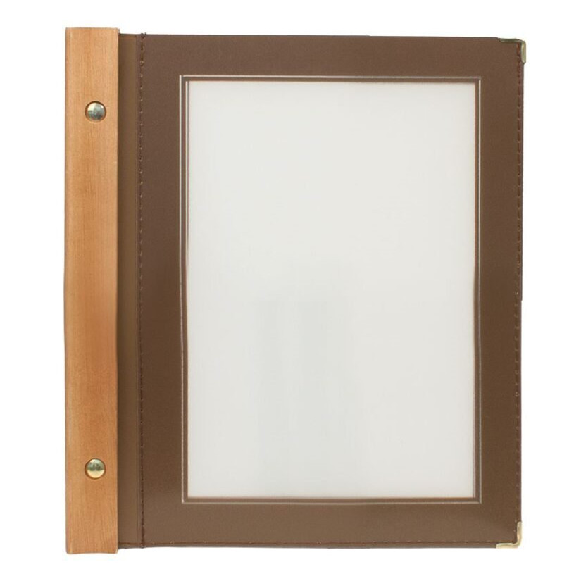 Menus of the WOOD series have a hard back made of solid wood. Double-sided inserts with sewn edges in different colors are inserted into the back.