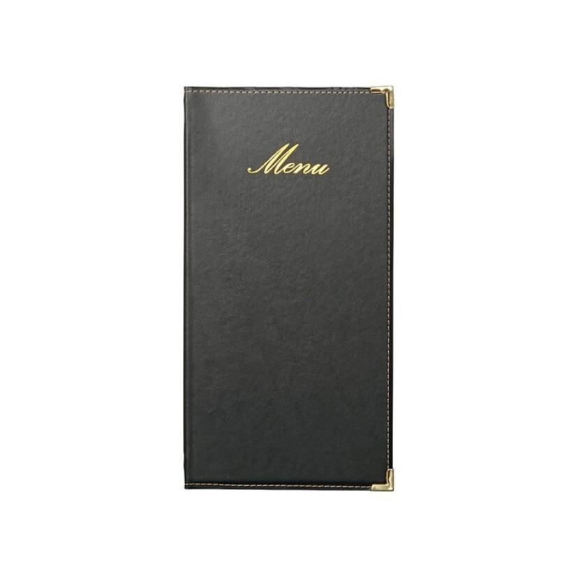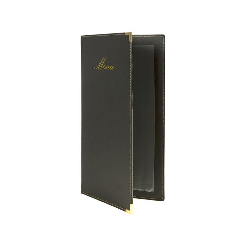 Menu cards of the CLASSIC series are made of leather imitation material. They come in the following colors: black, burgundy, ivory, brown. CLASSIC series products have metal protective edge corners, which are appreciated by users in restaurants with a lot of guest traffic. The food and drink tickets of the CLASSIC series are printed with an embossed inscription in gold color. The delivery includes 1 insert for a total of 4 pages of the offer.