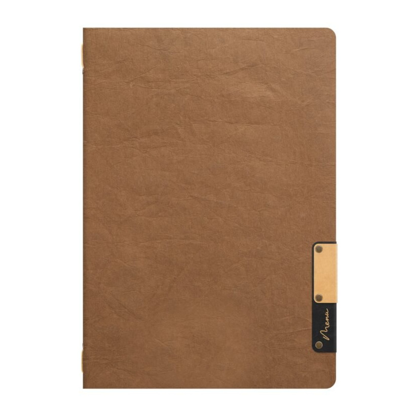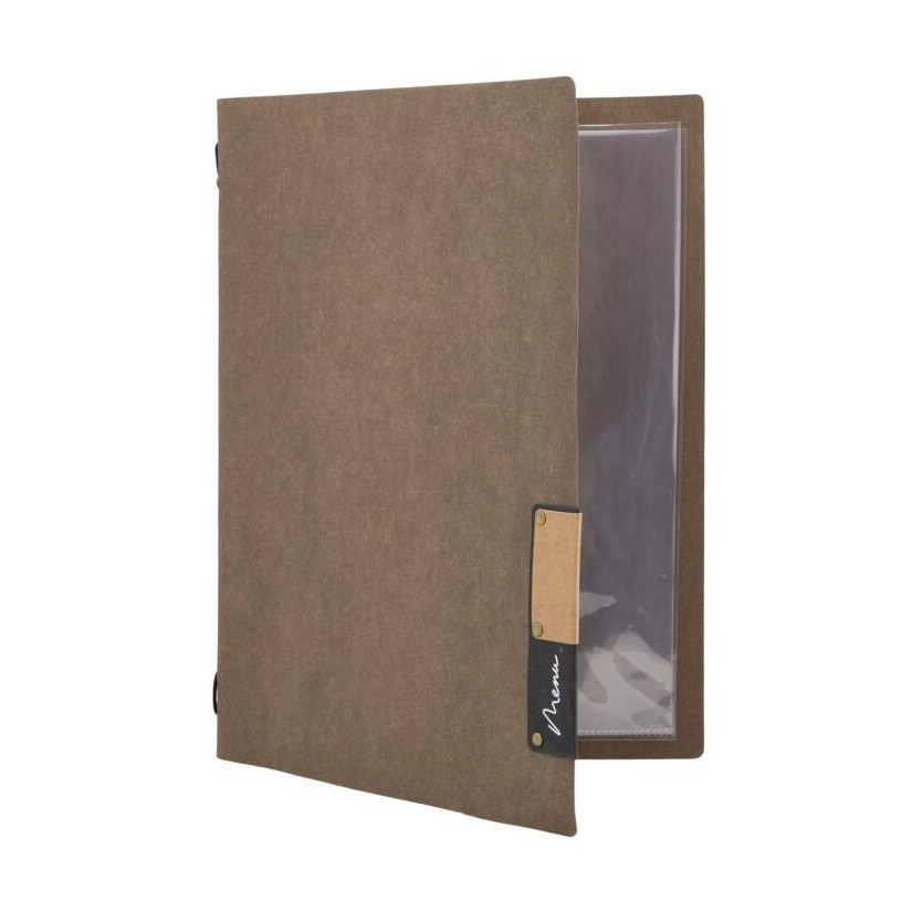 Menu card A4 Nature, with one insert (4 pages), made of cellulose, brown