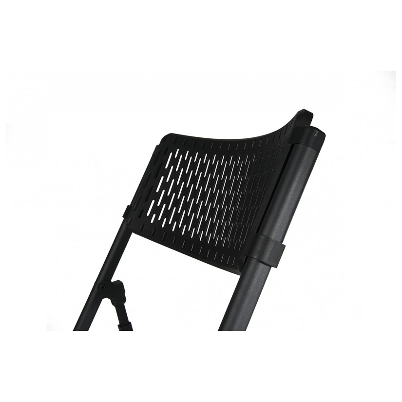 The Aran Chair Plus Black is a practical and elegant folding chair designed for professional environments where comfort, durability and quick setup are essential. Its flexible mesh-style polypropylene surface adapts to the body, while the perforated design ensures excellent airflow and fast drainage outdoors.