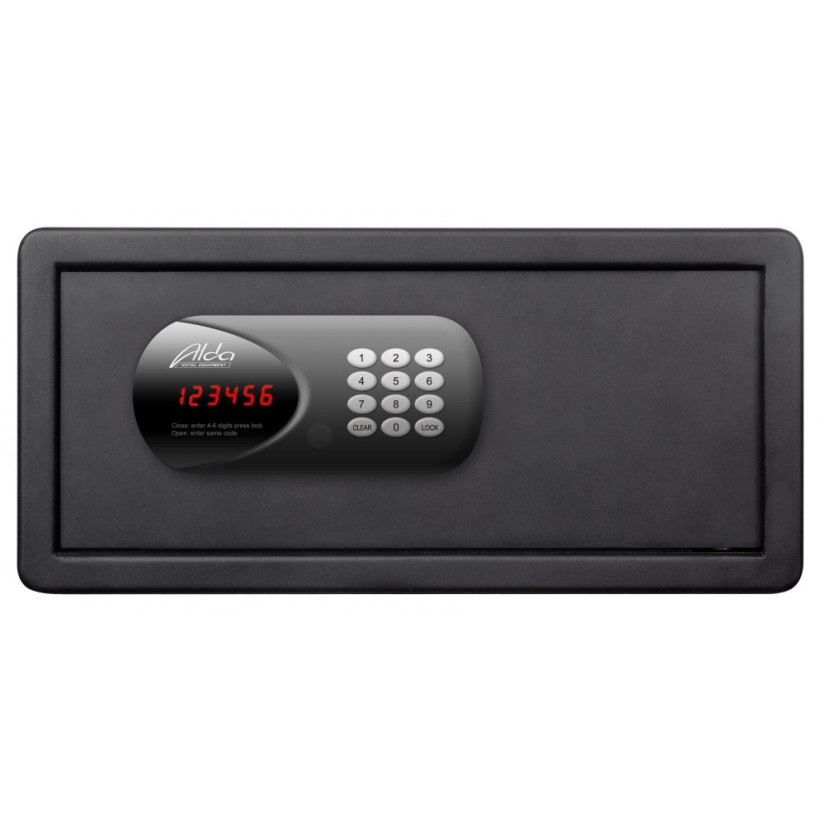 The ideal way to protect your guests' valuables is to use the DIGI Laptop safe. This is the most used solution that offers hotel guests a sufficient level of protection and peace of mind. The advantage of this solution is a larger interior space where you can also place a laptop with a diagonal of 15.6". This safe has an electronic dial code (4-6 digits), LED display, high-quality internal LED lighting, emergency opening using a master code (or a key), audit of the last 100 operations, automatic lighting of the inside of the safe after opening it (for 20 seconds), etc. The safe can be anchored in the bottom (4 holes) or the back (2 holes) of the safe. The interior of the safe is equipped with a carpet. The safe is powered by 4 pieces of AA batteries (low consumption).