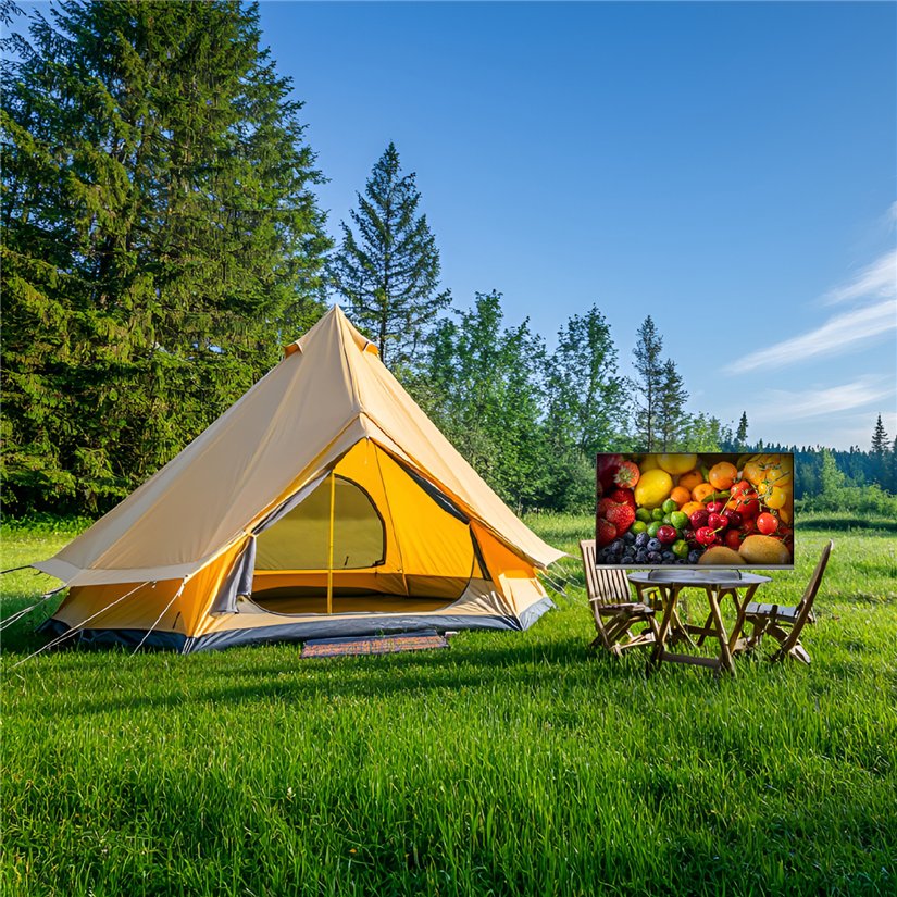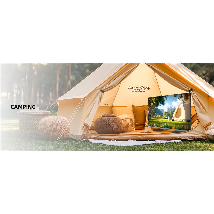 - Power bank, USB-C cable, network cable with 12V transformer, screws and a large beach bag for carrying the TV are included in the package