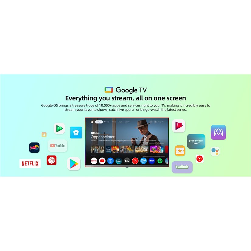 - Google Assistant, Chromecast built-in, Web browser, HbbTV 2.0