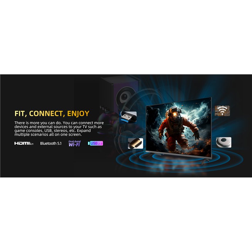 - Wide connectivity: HDMI 2.1, USB, Bluetooth 5.0 and dual-band Wi-Fi.