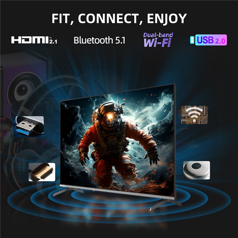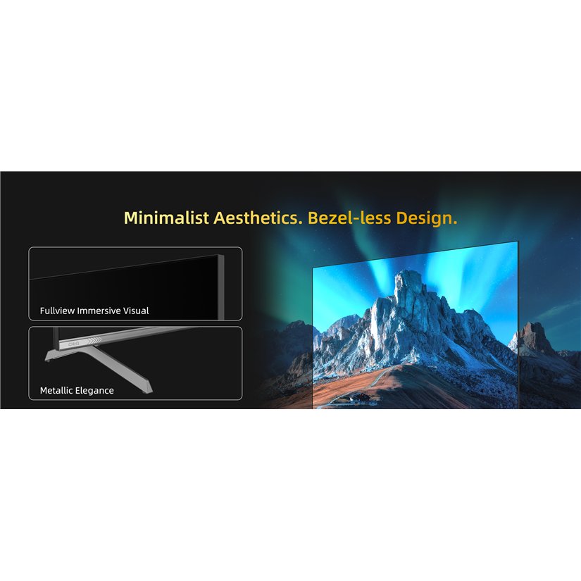 The minimalist metallic design combined with a frameless construction allows for maximum use of the display area and creates an impressive visual impression. The TV becomes a natural part of a modern interior and, thanks to its thin profile, looks elegant even when mounted on a wall.