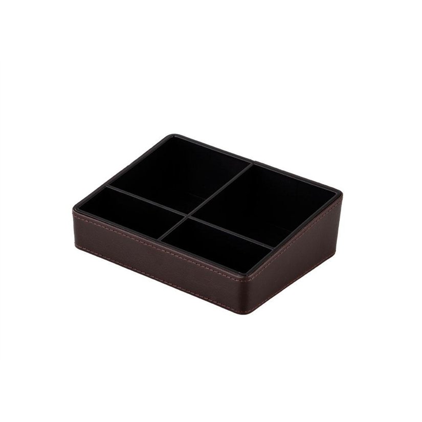 Praktični organizator za hotelsku uslugu pića pomaže u održavanju čaja, kave, šećera i drugih sitnica uredno organiziranih na jednom mjestu. Zahvaljujući svojim kompaktnim dimenzijama i elegantnom dizajnu s izgledom kože, izgleda predstavno i štedi prostor na stolu ili pladnju.