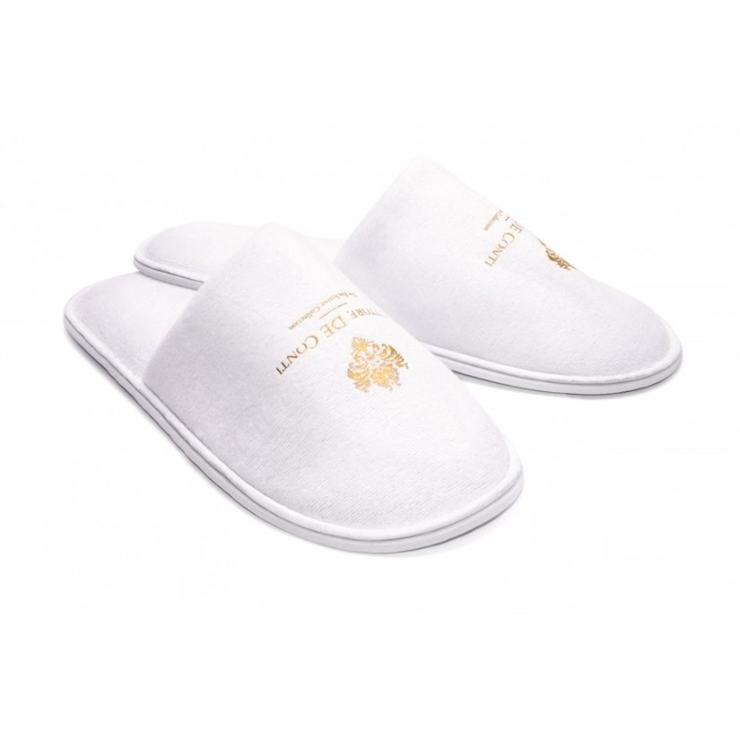 Vittore De Conti Velor papuče, bijele, zatvoreni vrh.