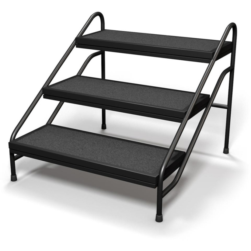 Tračne stepenice s tri koraka omogućuju siguran pristup višoj pozornici. Zahvaljujući svojoj čvrstoj konstrukciji i protukliznoj površini, pogodne su za bilo koji događaj.