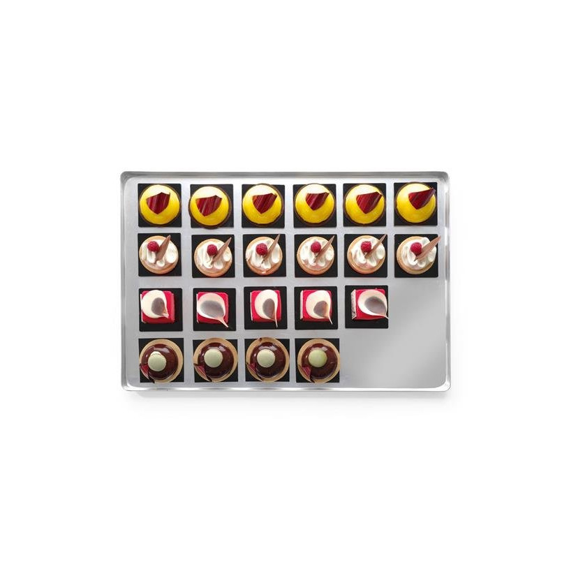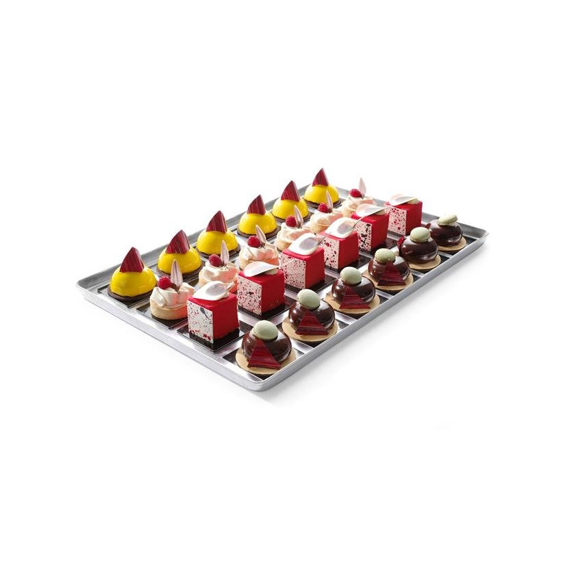 Ova elegantna poslužna posuda idealan je izbor za prezentaciju slatkiša. Njena svestranost i dizajn čine je pogodnom za korištenje kako u profesionalnim ugostiteljskim objektima, tako i u kućnim kuhinjama. Izrađena je od lagane aluminijske legure i dostupna je u srebrnoj boji. Imajte na umu da ovaj proizvod nije prikladan za pranje u perilici posuđa.