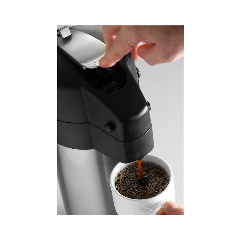 Jedan praktičan termos s pumpom za tople napitke. Ovaj uređaj je idealan za restorane, hotele, catering tvrtke i kućnu uporabu. Trebao bi biti osnovna oprema za konferencijske dvorane. Ima vrlo jednostavno rukovanje i dobra izolacijska svojstva.
