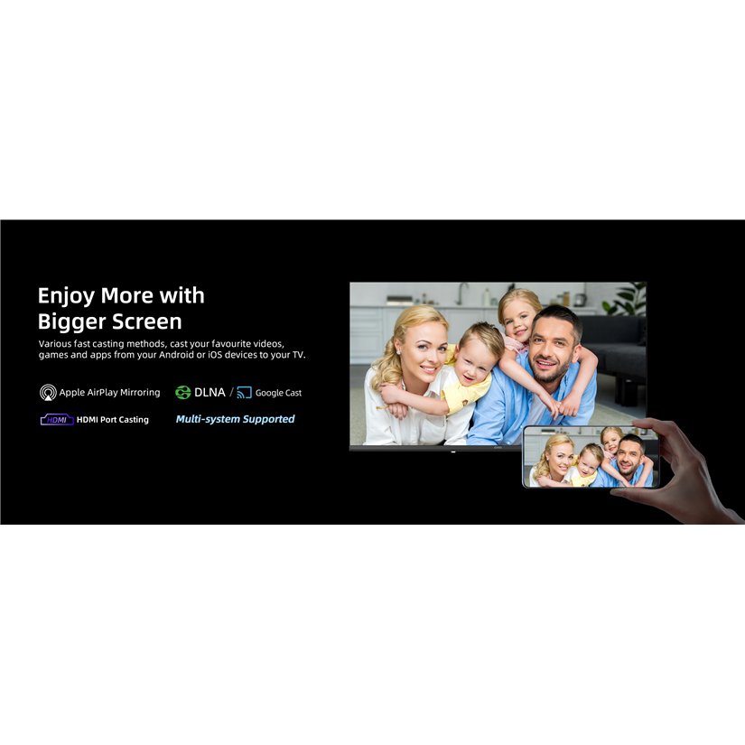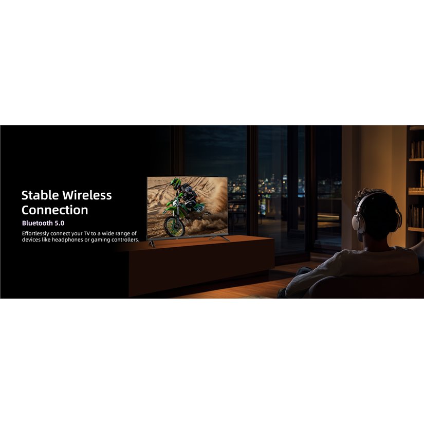 Televizor ima HDMI i USB priključke, dual-band Wi-Fi i Bluetooth 5.0. Možete spojiti više uređaja i vanjskih izvora, poput igraće konzole, USB sticka, slušalica ili soundbara.