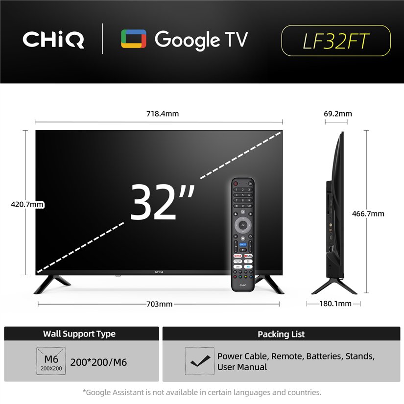CHiQ LF32FT - FHD LED Google TV, 32” (81 cm), jamstvo 2+2 godine
