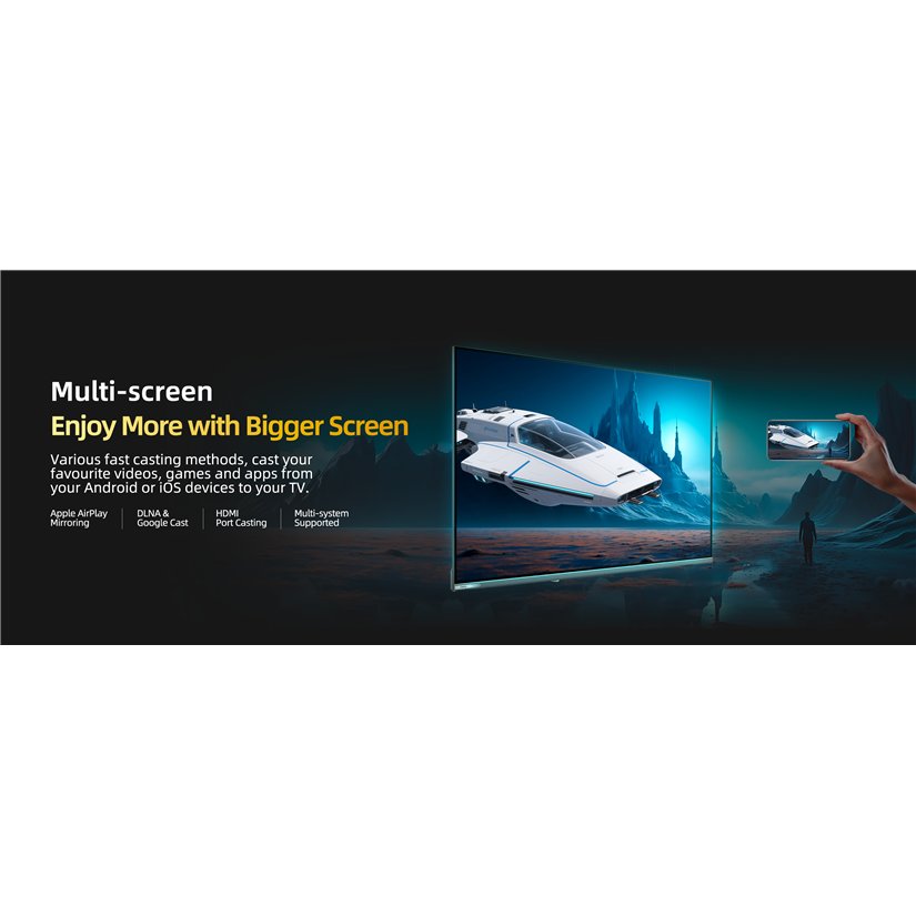 Ultra tanki dizajn bez okvira s metalnim okvirom izgleda elegantno u svakom interijeru i maksimizira površinu zaslona. Operativni sustav Google TV 5.0 jasno objedinjuje vaše omiljene aplikacije, usluge streaminga i prijenose uživo te omogućuje praktično glasovno upravljanje putem Google Assistanta. Televizor je također spreman za moderne igraće konzole zahvaljujući funkcijama DLG 120 Hz, MEMC, VRR i ALLM, koje osiguravaju glatku sliku i kratko vrijeme odziva.