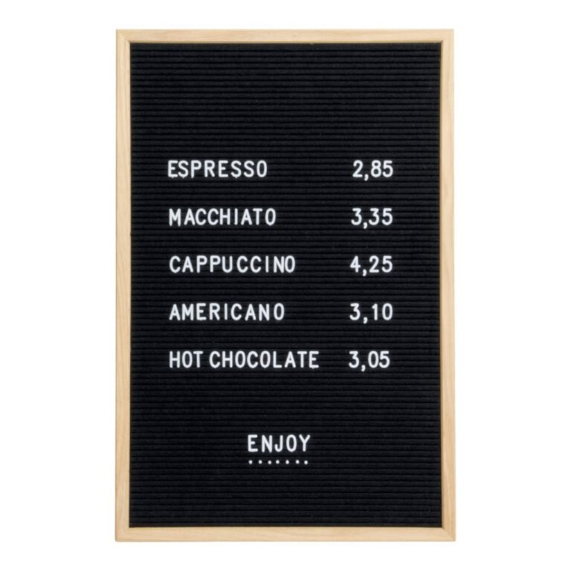 This medium-sized slide-in board offers extended space for clear text messages using plastic letters, making it ideal for menus, notices, or price lists.