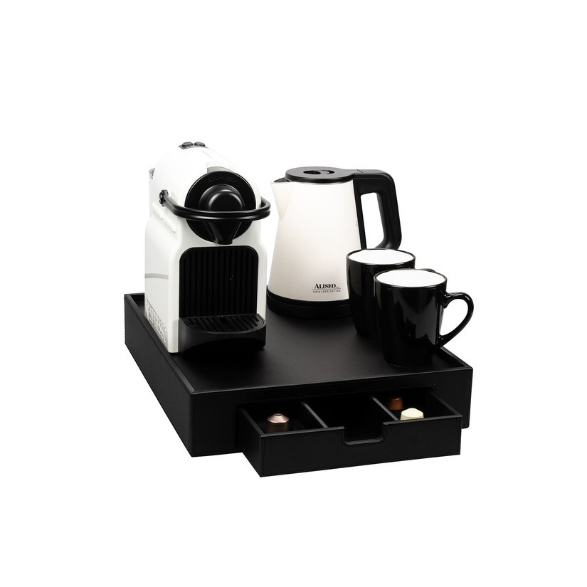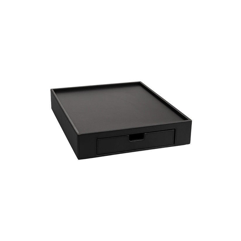 Tavă din piele cu sertar 330 x 75 x 420 mm The Londoner Noir, negru