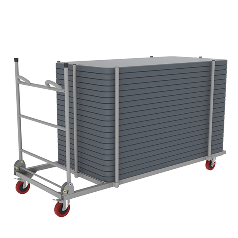 Carucior pliabil cu baza extensibila. Ideal pentru mesele XL120, XL150, XL180 si XL240. Realizat din otel vopsit. Capacitate: 20 buc. XL150, 20 buc. XL180, 18 buc. XL240.
