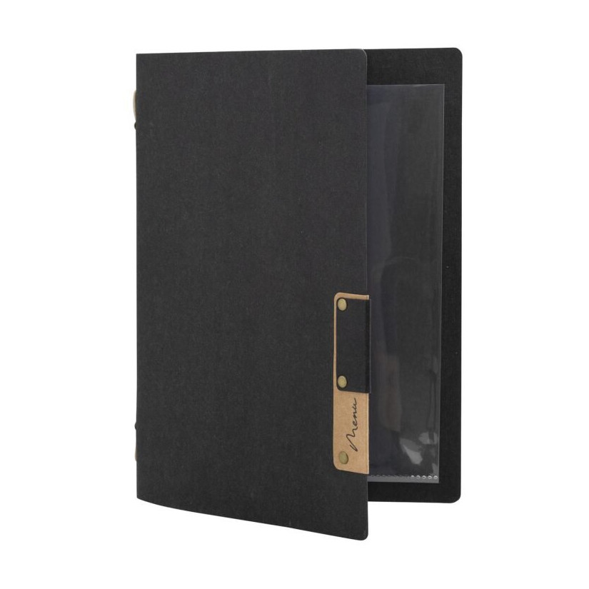 Meniu A5 Nature, cu un insert (4 pagini), fabricat din celuloză, negru.