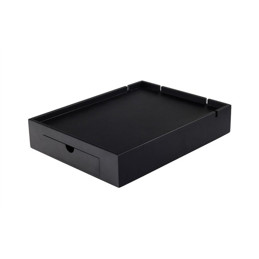 Un tăviță practică, cu spațiu de depozitare integrat, oferă soluția ideală pentru serviciul de cafea și ceai în hotel. Datorită combinației dintre o zonă de depozitare mare și o sertar cu compartimente, ajută la păstrarea tuturor accesoriilor bine organizate și mereu la îndemână.