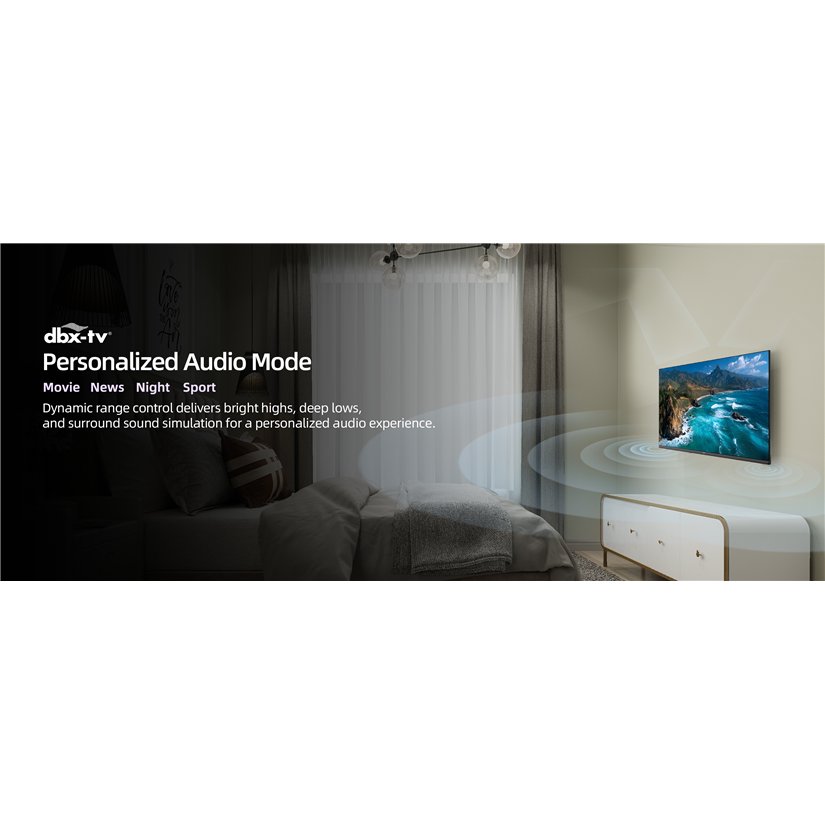 Televizorul are porturi HDMI și USB, wi-fi dual-band și Bluetooth 5.0. Puteți conecta mai multe dispozitive și surse externe, cum ar fi o consolă de jocuri, un stick USB, căști sau soundbar.