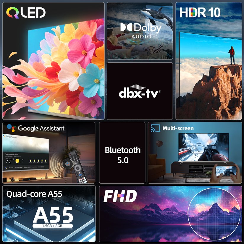 CHiQ L40QST - Televizor Google TV FHD QLED ultra-subțire din metal, 40” (102 cm), garanție 2+2 ani