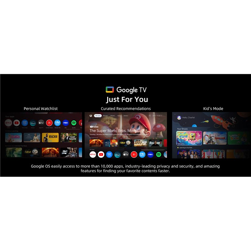 Sistemul de operare Google TV adună în același loc aplicații populare, servicii de streaming și conținut recomandat și asigură un control intuitiv. Datorită Chromecast integrat și suport pentru control vocal cu Google Assistant, lucrul cu televizorul este rapid, clar și convenabil. Combinarea tehnologiei Dolby Audio și dbx-tv, care îmbunătățește claritatea dialogurilor, asigură un sunet de înaltă calitate și dinamică sonoră generală.