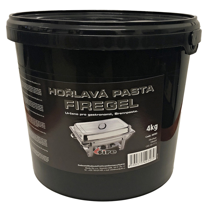 Pasta inflamabilă Firegel 4kg este destinată gastronomiei pentru încălzirea și menținerea temperaturii alimentelor. Această pastă este fabricată din etanol de înaltă calitate pentru a avea cea mai mare valoare calorifică. Arde cu o flacără curată, luminoasă albastră fără formarea de funingine.