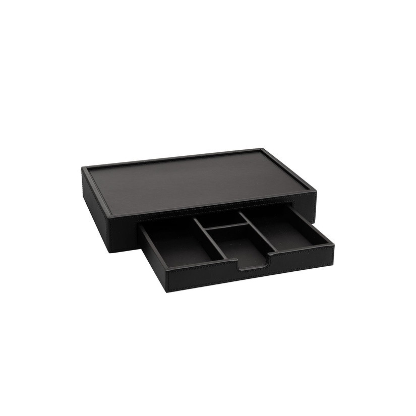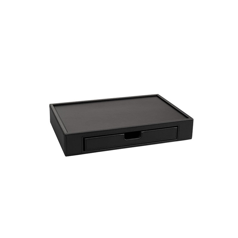 Leather tray with drawer 300 x 50 x 200 mm The Londoner Noir, black