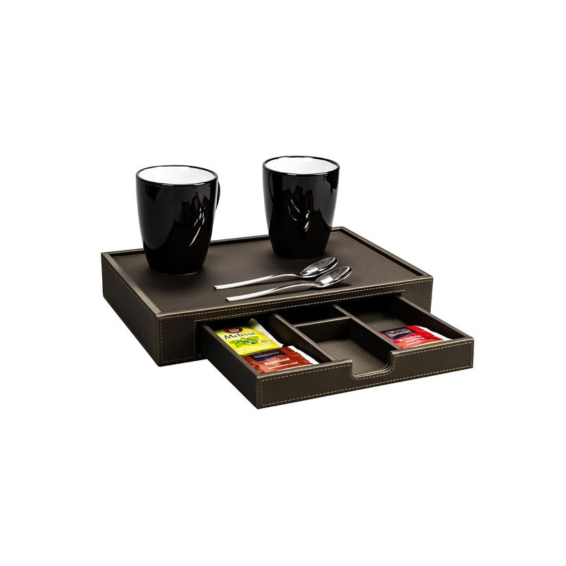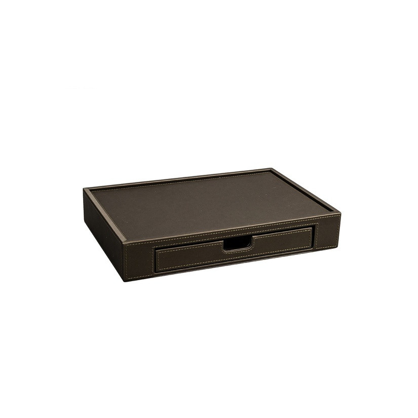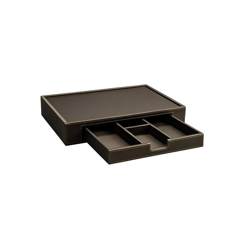 Leather tray with drawer 300 x 50 x 200 mm The Londoner Tradition, brownish gray