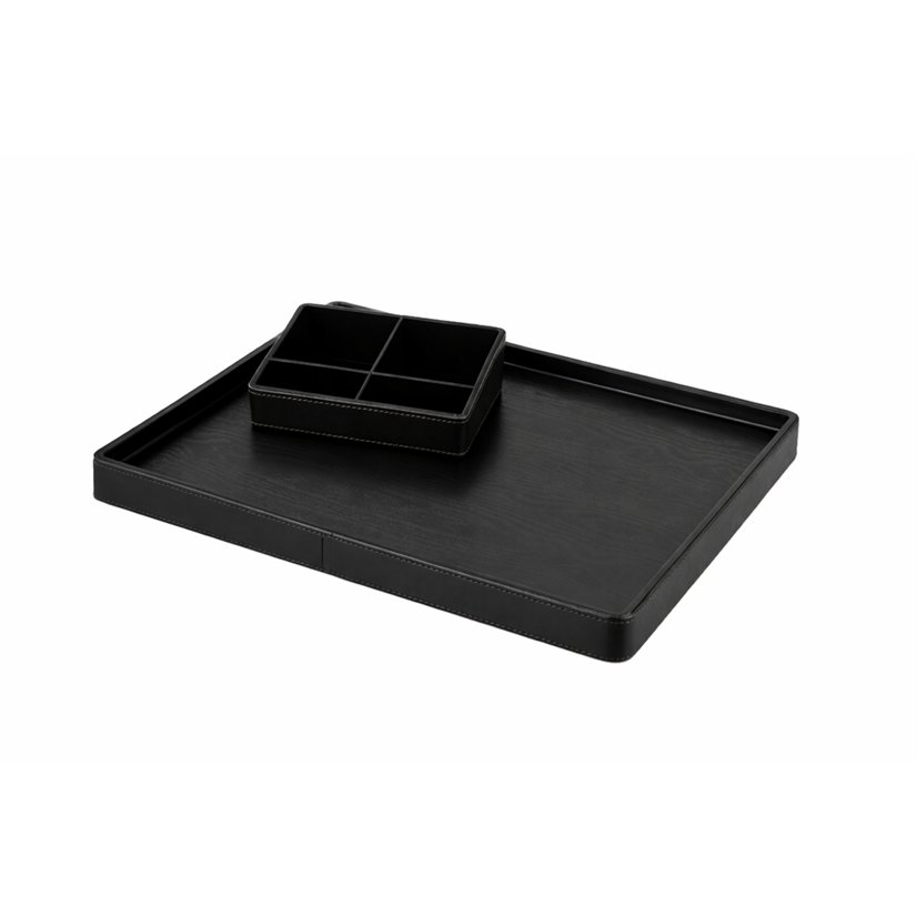 - Elegant appearance: the surface in leather decor gives the tray a sophisticated character