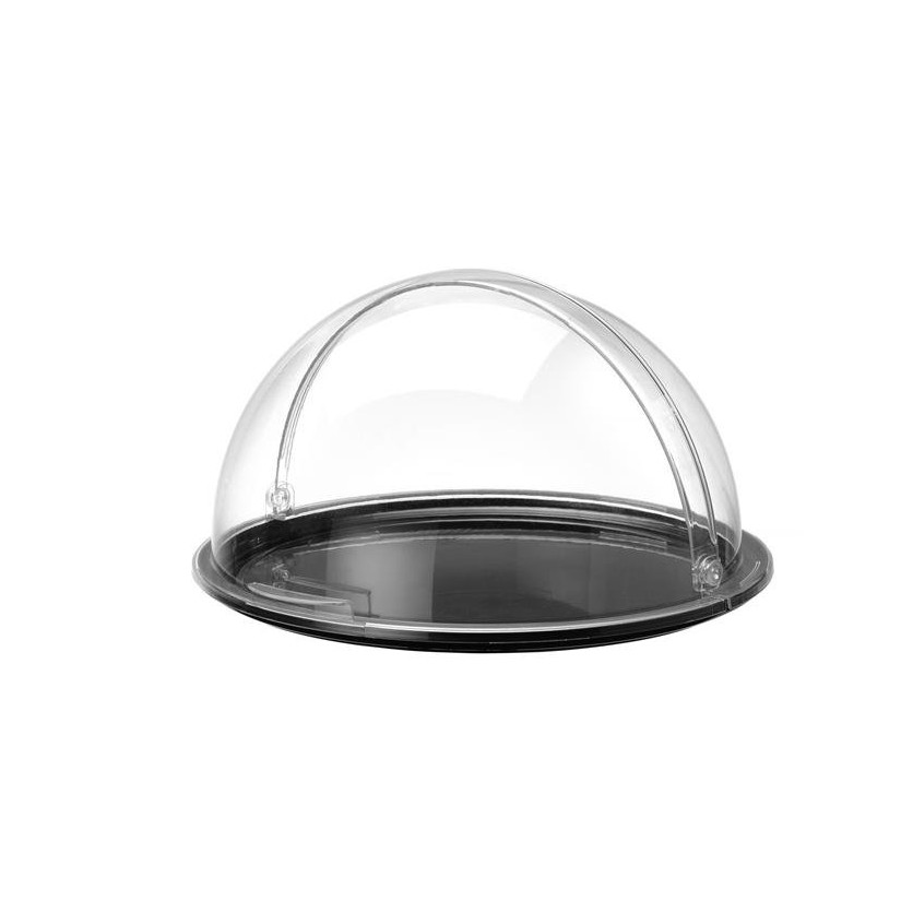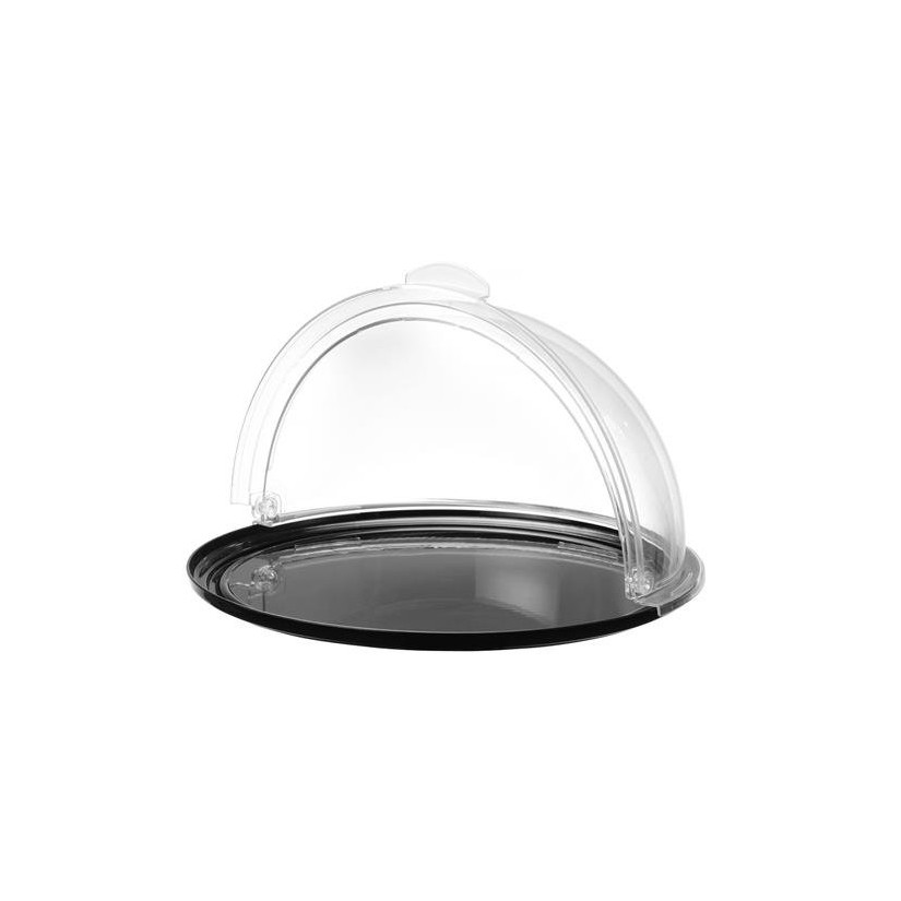 This tray is made of high-quality black polycarbonate and comes with a transparent lid that adapts to its shape. The lid protects the food from drying out and at the same time allows an easy overview of the contents of the tray. The material of the tray and lid is neutral and does not affect the taste or smell of the stored food. The tray is temperature resistant from -40°C to +99°C, making it ideal for a wide range of applications. The weight of the tray is 0.65 kg and its external dimensions are ø350×(H)180 mm. The tray can be washed in the dishwasher and is also recyclable.