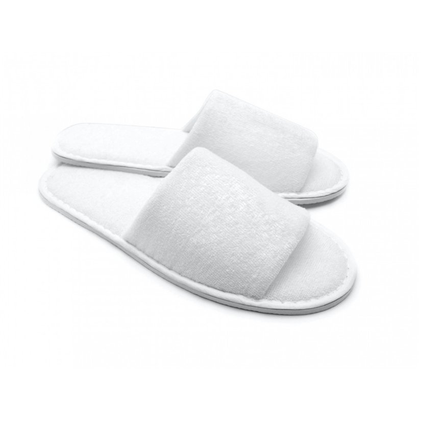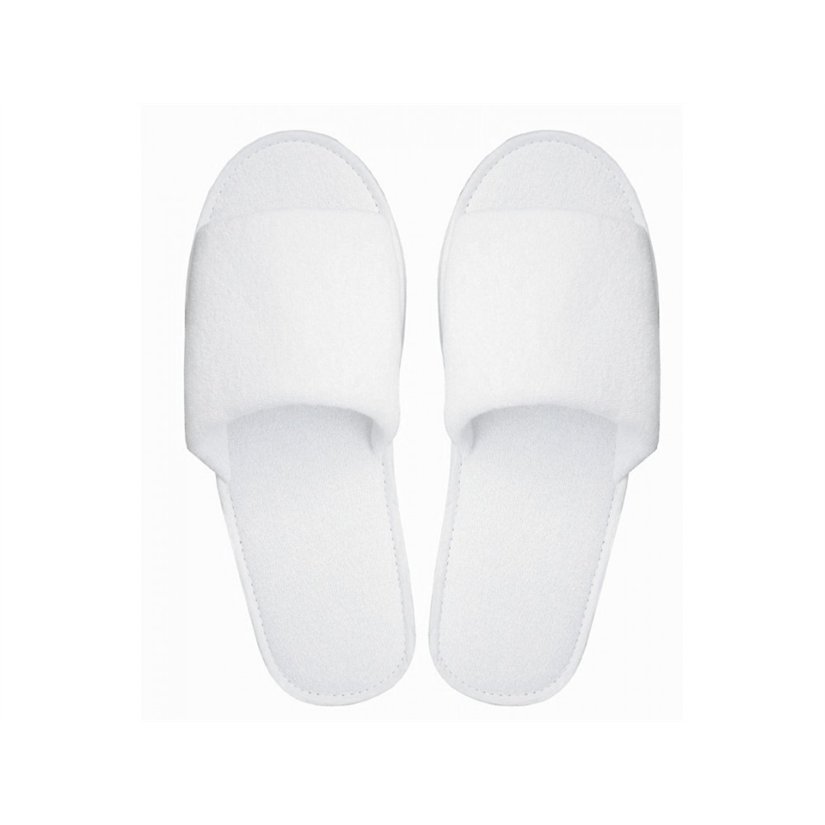 Deliver a clean and comfortable guest experience with our open-toe terry slippers. These white hotel slippers are ideal for short stays, spa areas, or wellness facilities, combining simplicity with soft comfort.