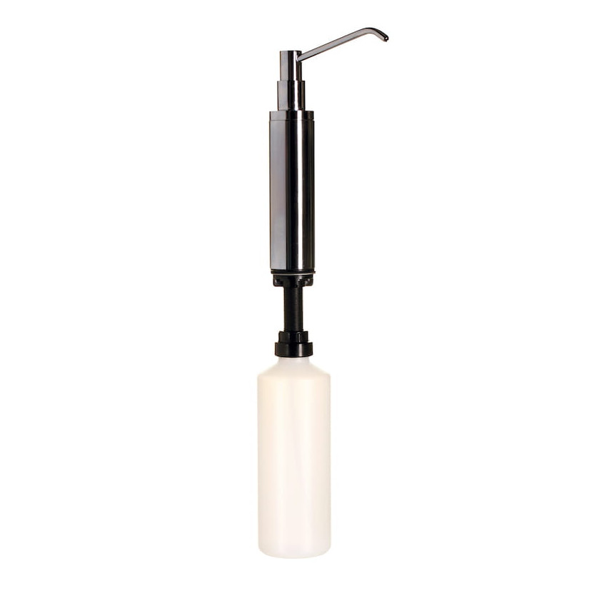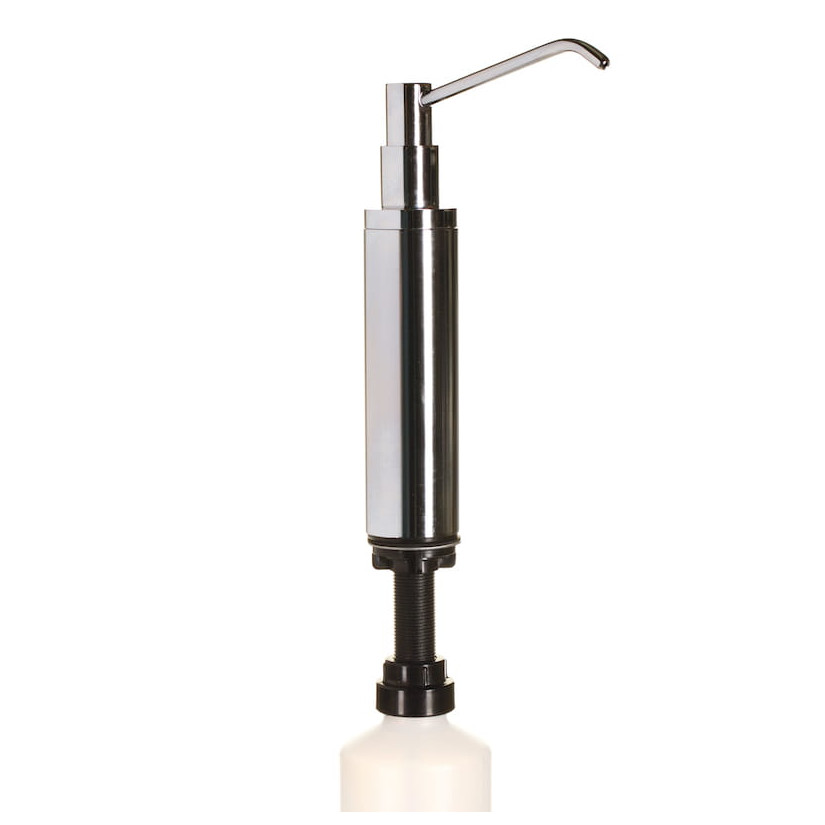 This tabletop soap dispenser is an ideal solution for kitchens, bathrooms or public toilets, where an elegant and practical solution for dispensing soap is needed. The dispenser is equipped with a large soap container with a capacity of 1000 ml, which is integrated into the extended base, allowing easy placement on any sink without the need for additional modifications. Filling the dispenser is possible with any liquid soap. The dispenser is made of chrome-plated brass material, which guarantees its solidity and long life. The dosing mechanism is metal and very durable. This soap dispenser is not only practical, but also an aesthetically pleasing addition to your bathroom or kitchen, which combines functionality with modern design.