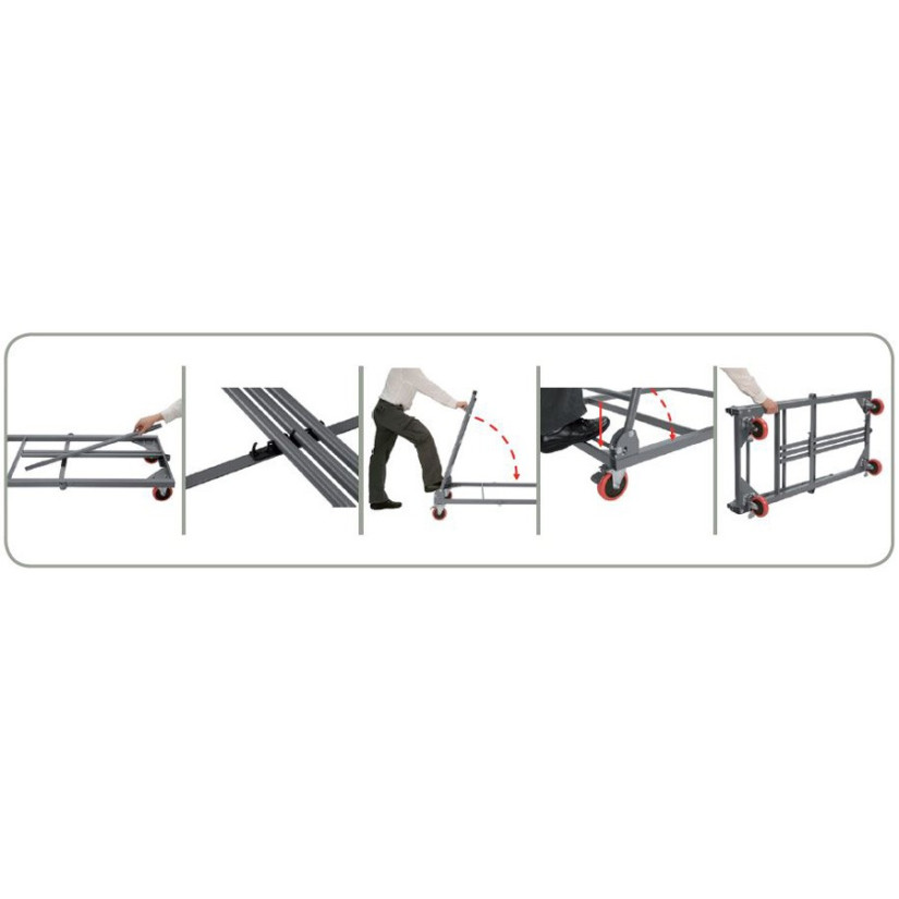 Folding cart with expandable base. Ideal for XL120, XL150, XL180 and XL240 tables. Made of painted steel. Capacity: 20 pcs XL150, 20 pcs XL180, 18 pcs XL240.