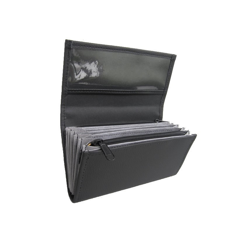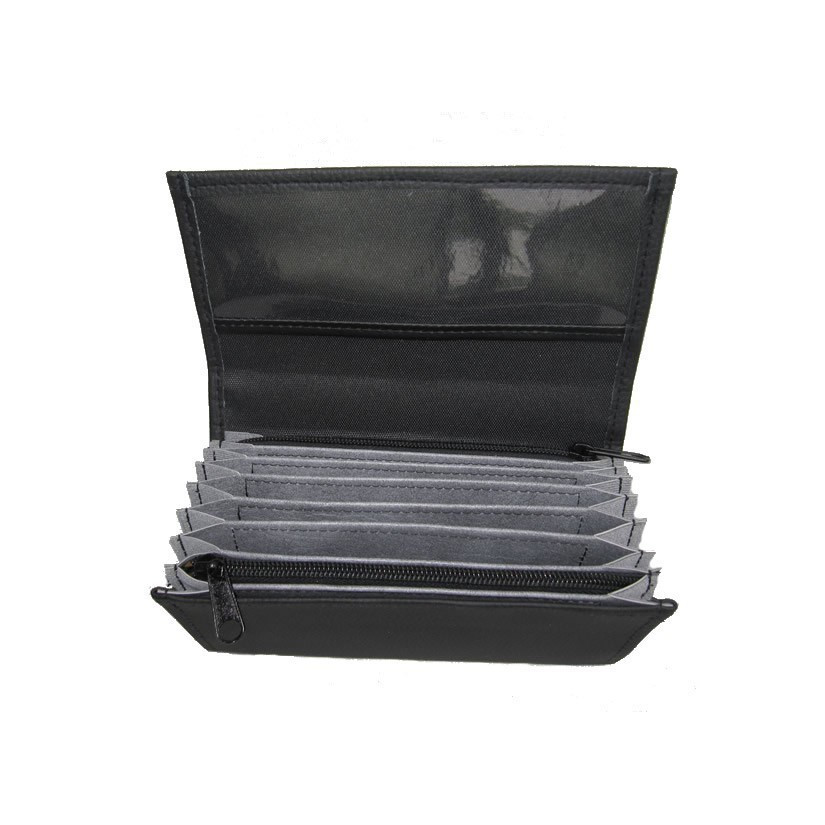 Waiter cashier bag - 2 zippers, leatherette, ribbed, black